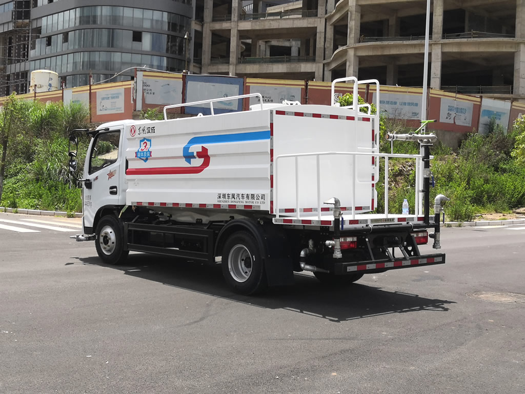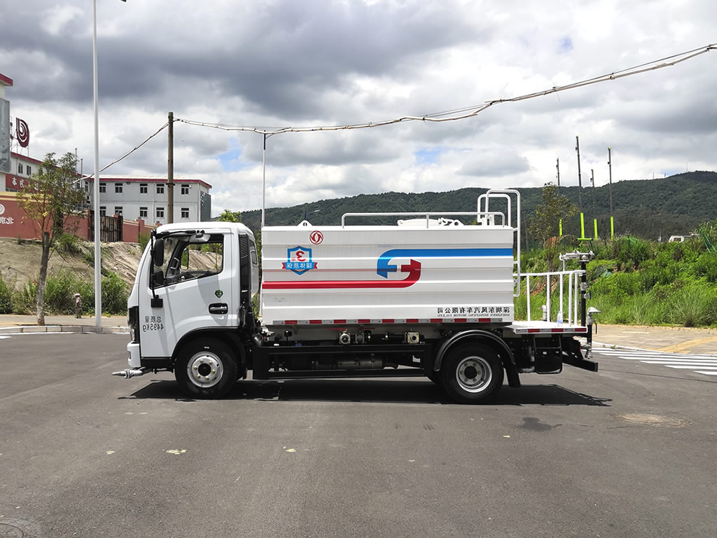 该车配有水罐总成,水路和控制系统等,用于城镇园林绿化,环境清洁喷洒作业.后部选装箭头灯用于作业时警示,只能在车辆切换为作业状态时使用.随底盘选装驾驶室,选装雾炮不同安装方式及不安装雾炮机组,选装不安装前鸭嘴,选装不同结构对冲及位置,选装不同样式后水炮,选装不安装箭头灯,选装罐体两侧不安装管箱,选装右侧进水阀样式,选装无罐体加水口,选装侧面管路,选装罐体两侧上部不安装侧喷水装置.选用3308mm轴距.罐体外形尺寸(mm)(罐 长 × 长轴 × 短轴):3200×1600×1100;罐体容积3.79立方米,有效容积3.61立方米;介质名称:丙酮水溶液,密度:950千克/立方米.侧防护装置材质为Q235B,采用螺栓连接;后防护装置材质为Q235B,采用螺栓连接,截面尺寸(mm)为120×60,最大离地高度440mm.ABS型号/厂家:ABS/ASR-12V-4S/4M/襄阳东风隆诚机械有限责任公司.该车型可选装ETC车载装置.