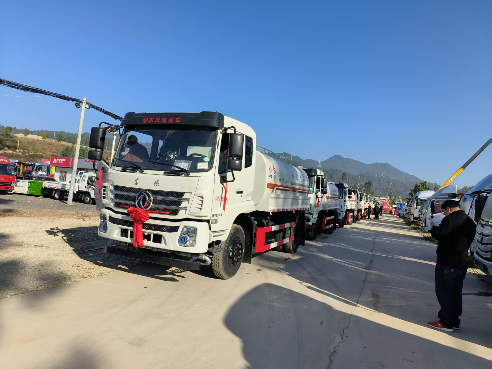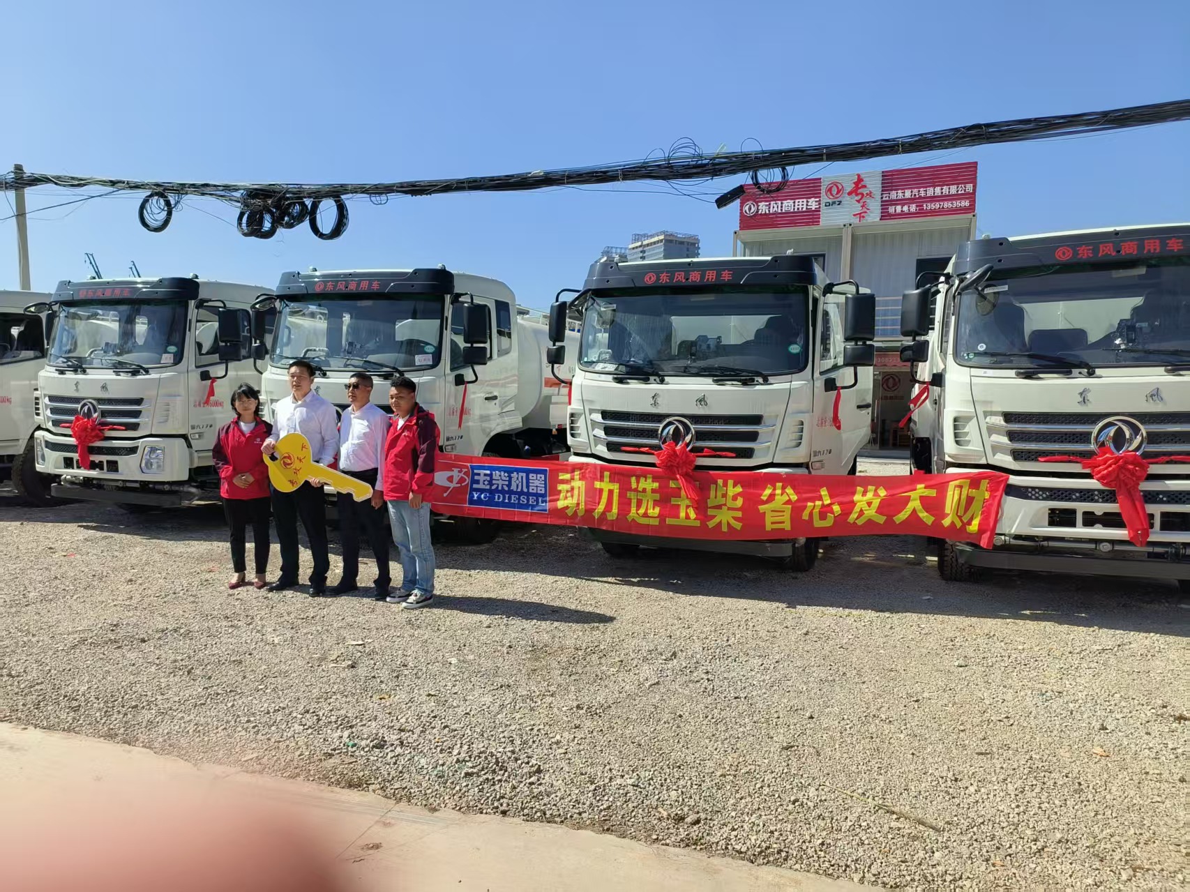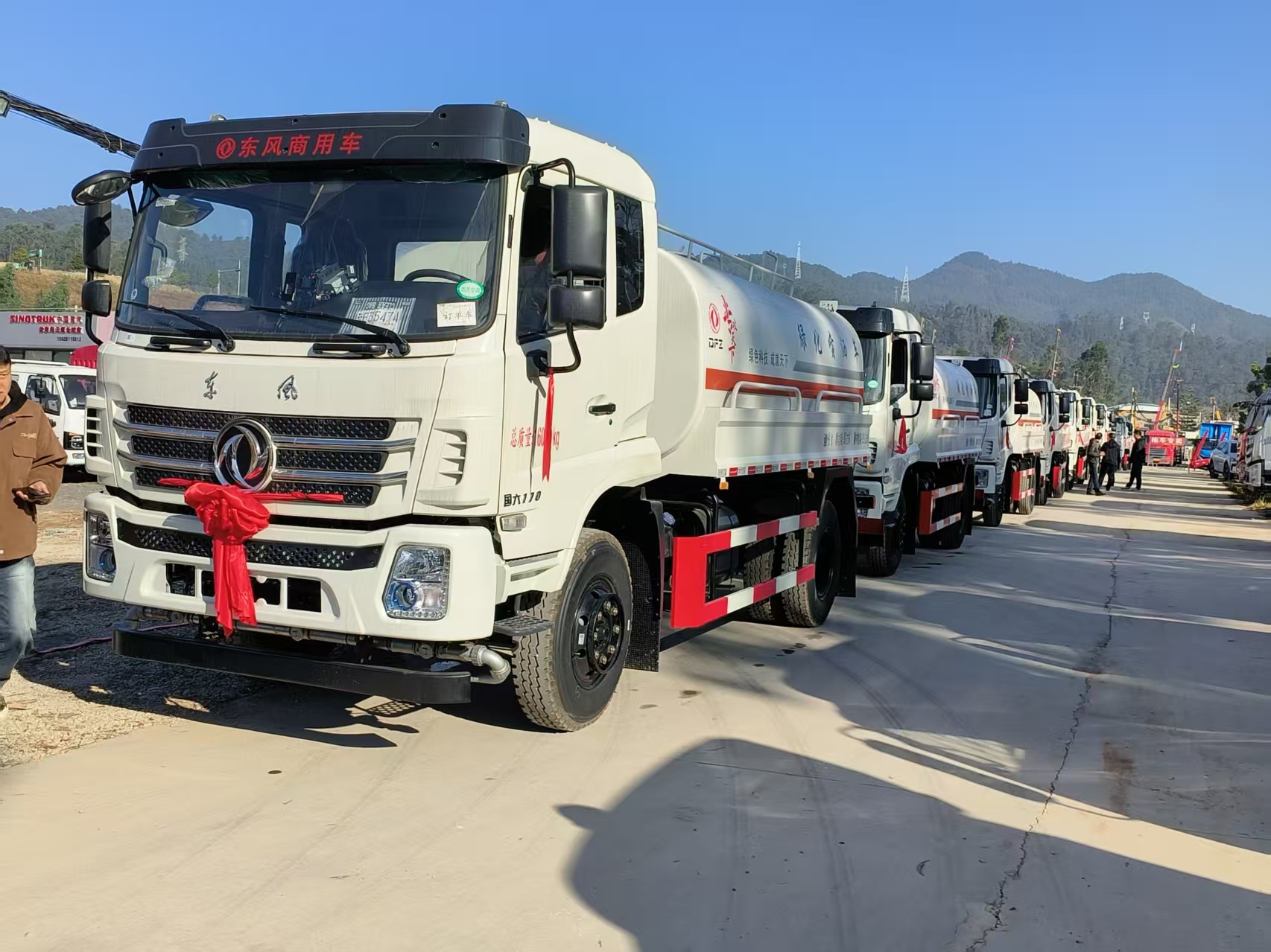 中国电建采购在云南东展批量采购东风原装“专攻天下”洒水车,并在厂家相关领导主导下完成车辆交接仪式。