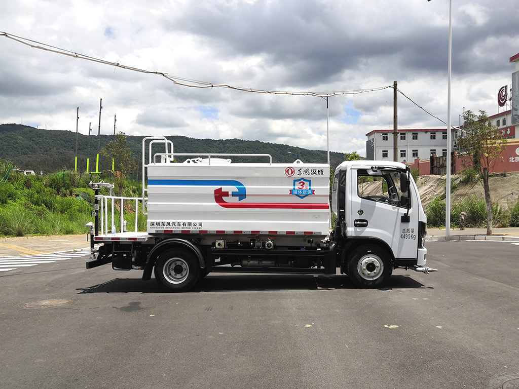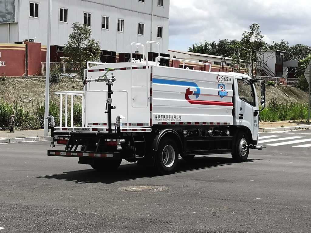 该车配有水罐总成,水路和控制系统等,用于城镇园林绿化,环境清洁喷洒作业.后部选装箭头灯用于作业时警示,只能在车辆切换为作业状态时使用.随底盘选装驾驶室,选装雾炮不同安装方式及不安装雾炮机组,选装不安装前鸭嘴,选装不同结构对冲及位置,选装不同样式后水炮,选装不安装箭头灯,选装罐体两侧不安装管箱,选装右侧进水阀样式,选装无罐体加水口,选装侧面管路,选装罐体两侧上部不安装侧喷水装置.选用3308mm轴距.罐体外形尺寸(mm)(罐 长 × 长轴 × 短轴):3200×1600×1100;罐体容积3.79立方米,有效容积3.61立方米;介质名称:丙酮水溶液,密度:950千克/立方米.侧防护装置材质为Q235B,采用螺栓连接;后防护装置材质为Q235B,采用螺栓连接,截面尺寸(mm)为120×60,最大离地高度440mm.ABS型号/厂家:ABS/ASR-12V-4S/4M/襄阳东风隆诚机械有限责任公司.该车型可选装ETC车载装置.