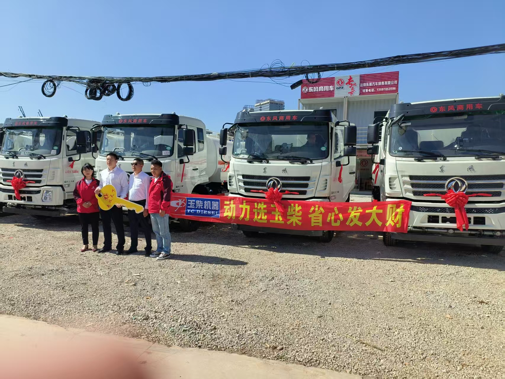 中国电建采购在云南东展批量采购东风原装“专攻天下”洒水车,并在厂家相关领导主导下完成车辆交接仪式。